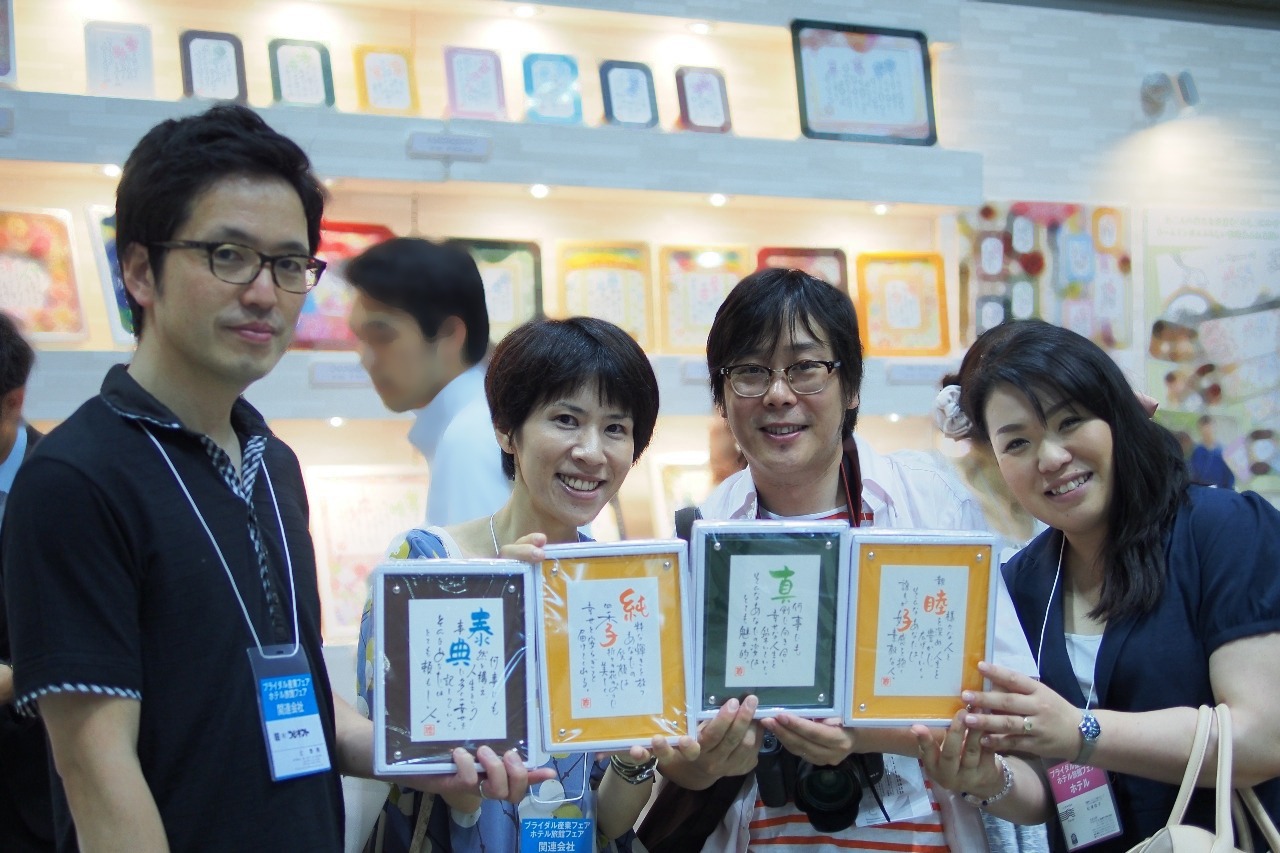 ※ 写真は、先日のブライダル産業フェアにて、ネームインポエムブースにお立ち寄りいただいたお客様 !!!