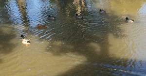 スタッフのWです。 冬の陽ざしを浴びてきらめく川面を、仲のよさそうな水鳥たちが 同じ方向にゆったりと泳いでいきます。かわいい~♪( *゚-゚* )