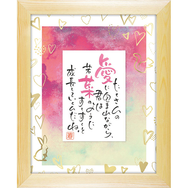 さり気なくたたずむうさぎとポエムを取り囲むたくさんのハートが可愛らしさを演出したデザイン。