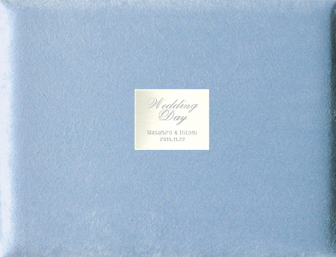 高級感漂うスエード素材で、表紙には名前と日付を刻印したアルミプレート付き。