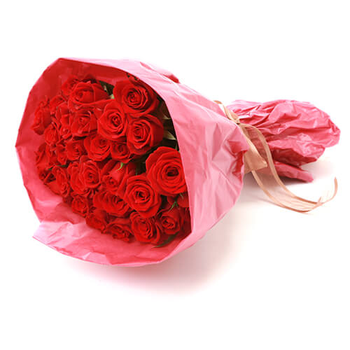 30本のバラの花束が感動的な雰囲気を盛り上げます。
