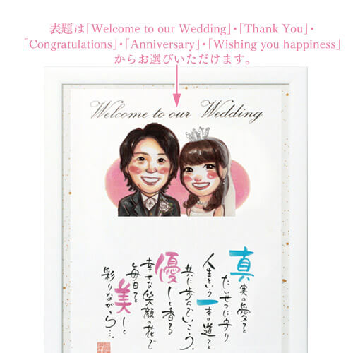 ※表題は「Welcome to our Wedding」・「Thank You」・「Congratulations」・「Anniversary」・「Wishing you happiness」からお選びいただけます。