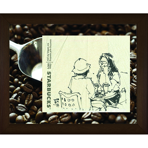画家の太井潤一さんがカフェでの何気ない風景を紙ナプキンに描いた作品です。