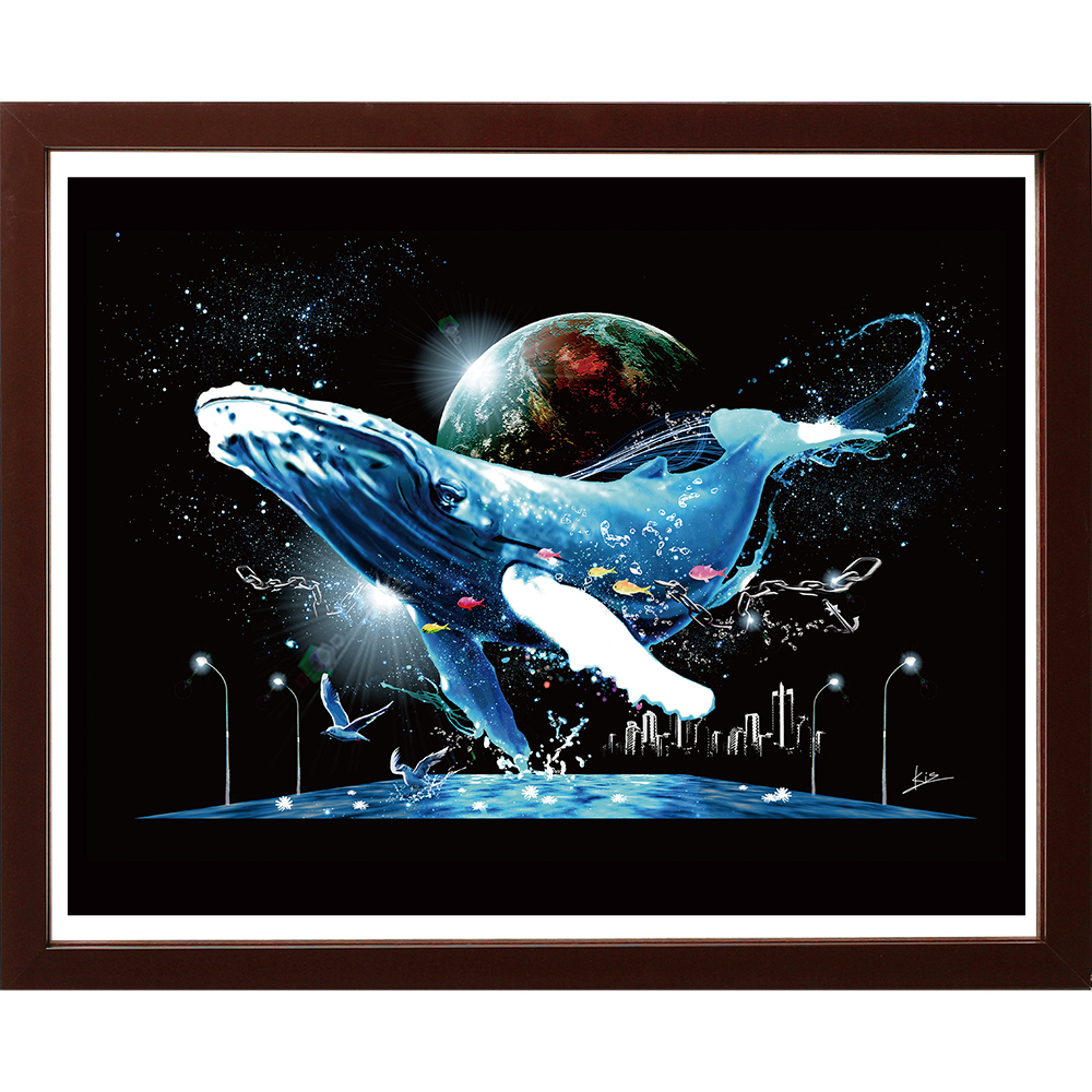 イラストレーター・Kisの深海と宇宙をテーマに広い世界で優雅に舞う鯨を描いた作品です。