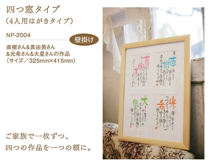 家族や兄弟姉妹のお名前をひとつの額に入れられるタイプです。