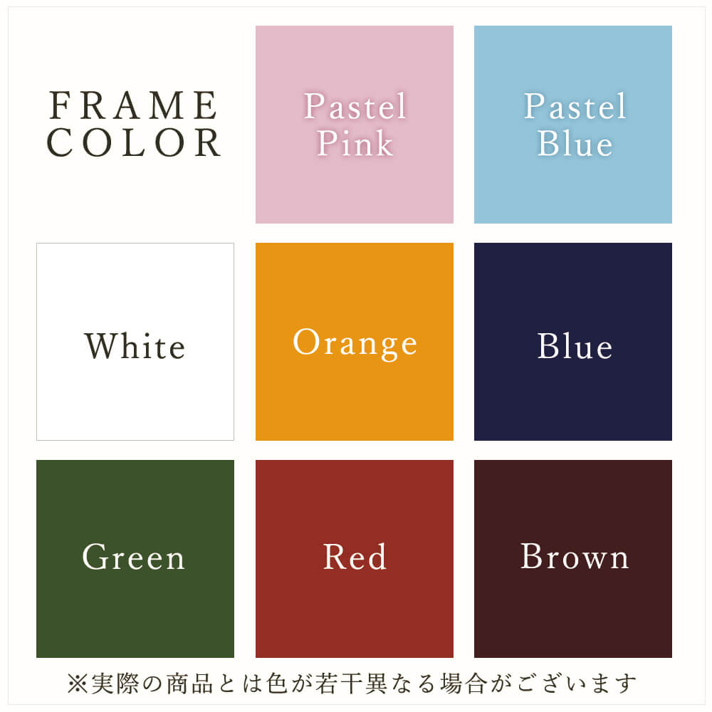 ・その他のフレームカラー:Red / Orange / Blue / Brown / White / Pastel Blue / Pastel Pink