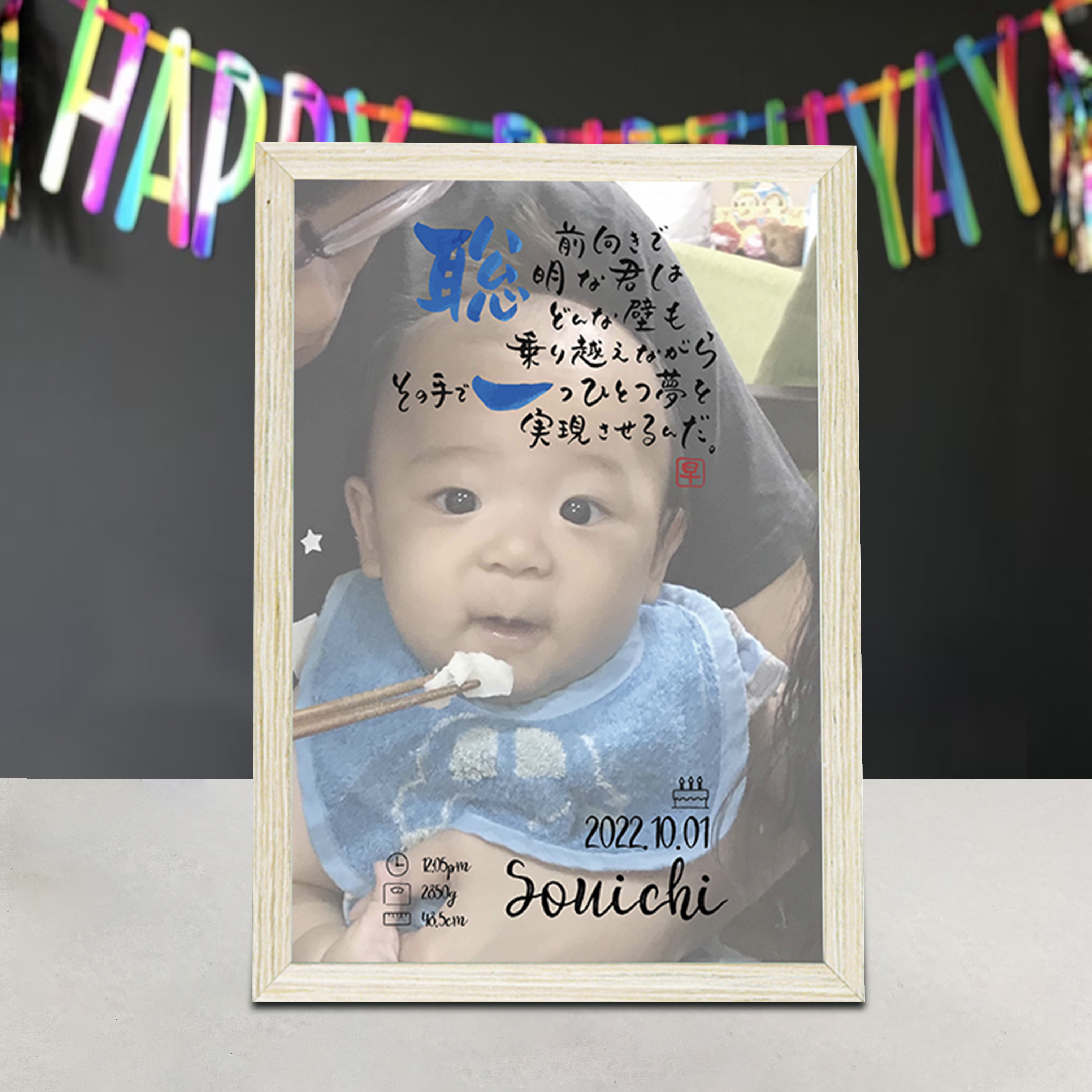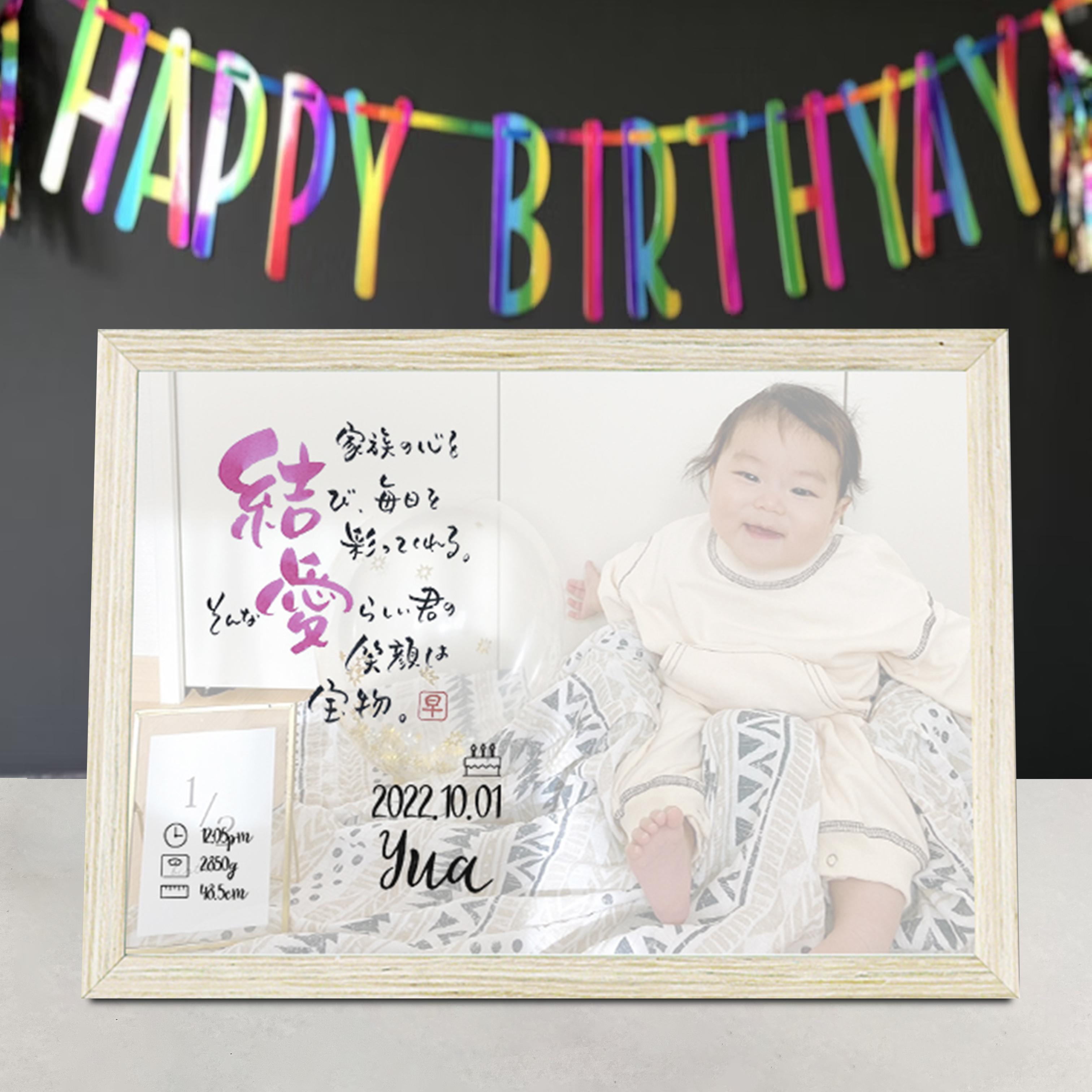 誕生日・出生時間・出生身長・出生体重も表記できるので、ご自身のお子様に、可愛いお孫様に、出産のお祝いに、全てのベビーにオススメのアイテムです!