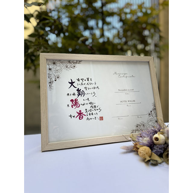 ナチュラルなデザインなので挙式後も飾りやすく、挙式日当日の決意表明をいつまでもインテリアとして残すことができます。