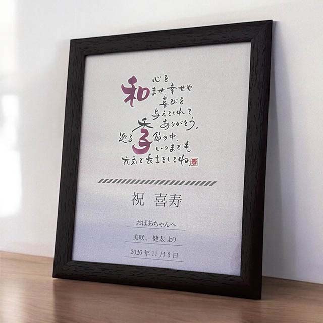 長寿を祝う紫色をベースにしたシンプルなデザインのポエムです。