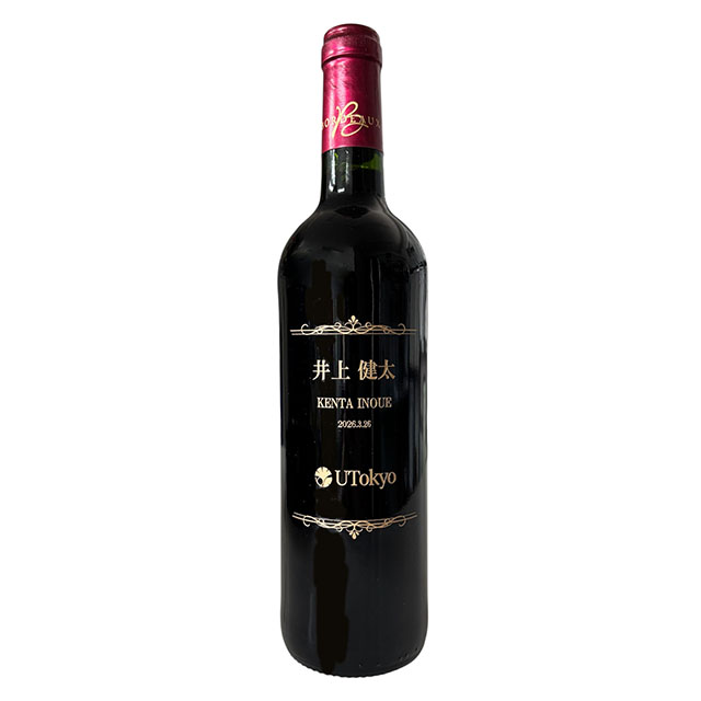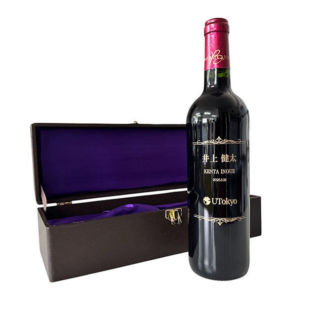 大学のロゴ入りの特別使用のワインボトルです。