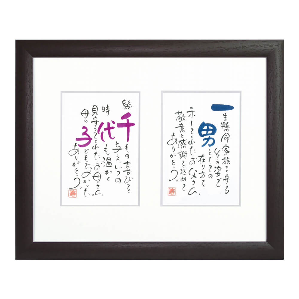 <一人ずつのポエムが二つ並んだタイプ。ご夫婦だけでなくご兄弟へのプレゼントにも>